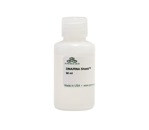 DNA/RNA Shield reagent is a DNA and RNA stabilization solution for nucleic acids in any biological sample. This DNA and RNA stabilization solution preserves the genetic integrity and expression profiles of samples at ambient temperatures and completely inactivates infectious agents (viruses, bacteria, fungi, & parasites). The unique DNA and RNA stabilization solution also prevents degradation from freeze-thaw cycling and unexpected freezer failures.