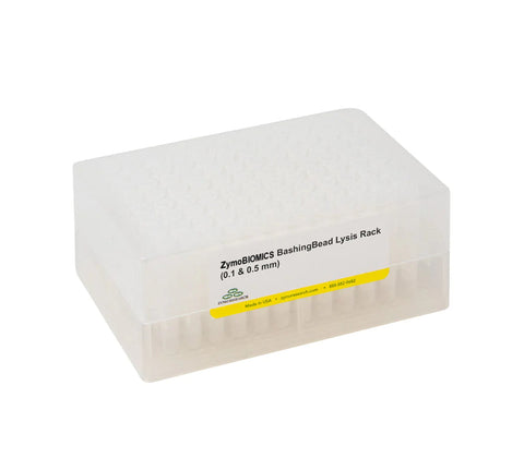 The ZymoBIOMICS BashingBead Lysis Rack contains an optimized BashingBead formulation for unbiased lysis of mixed microbial communities, making it the ideal solution to perform high-throughput processing for microbiome analysis.