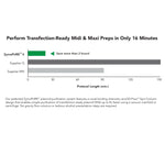 | Applicable For | Transfection, transformation, lentivirus production, adenovirus production, AAV production, CRISPR, genome editing, in vivo studies, sequencing, restriction endonuclease digestion, in vitro transcription/translation, PCR, and other sensitive applications. |
